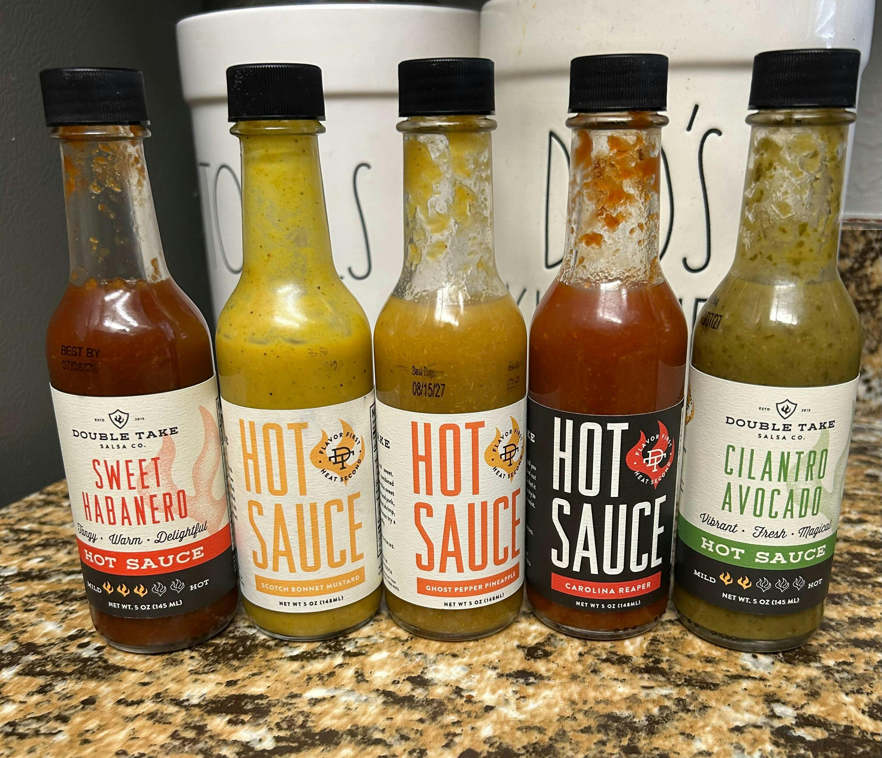 You know a hot sauce lover you say? Maybe you’re one. Just wait until you taste these Double Take hot sauces. Whether you buy this for yourself, or for a gift these sauces are blowing minds with the original recipe combinations and unique style. Not just vinegar and heat. This hot sauce 4 pack is the perfect gift for the person who loves adding a little flavor and spice to any meal: breakfast, lunch, or dinner.